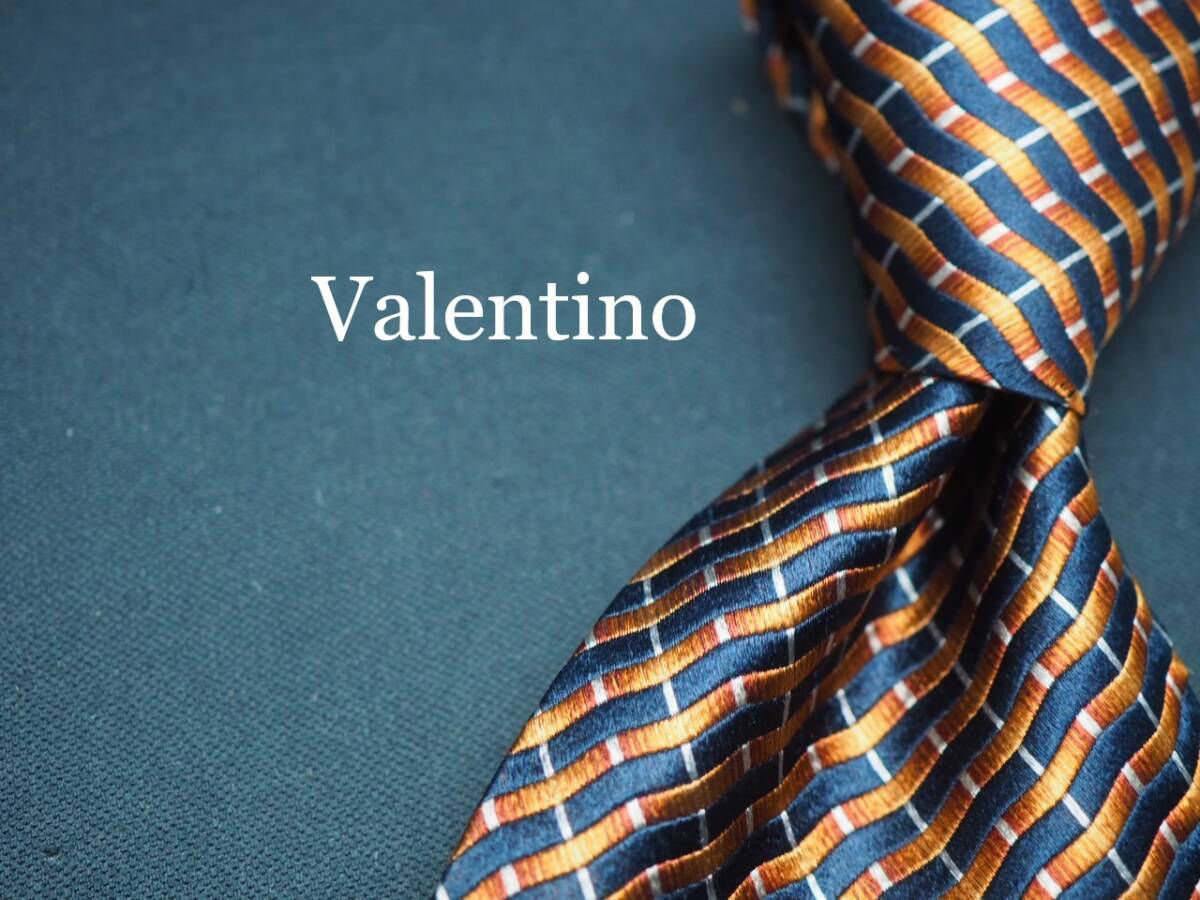 > 美品【VALENTINO ヴァレンティノ】 G1507 ネイビーブラウン系 SILK ブランド ネクタイ 古着 良品 転売 仕入