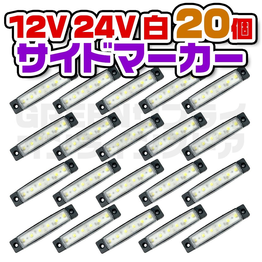 - サイドマーカー 防水 防塵 LED 6連 12V 24V ホワイト 20個