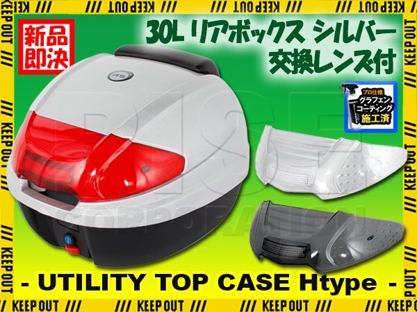 大容量 30L リアボックス クリア/スモークレンズ付属 バイク シルバー ヘルメット入れ 原付 スクーター 防犯対策 ハードケース クッション
