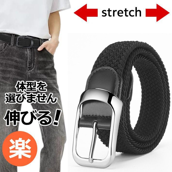 > カジュアルベルト 学生ベルト メンズ レディース 35mm 105cm 伸縮 カジュアル シンプル おしゃれ 7986653 シルバー×ブラック 新品