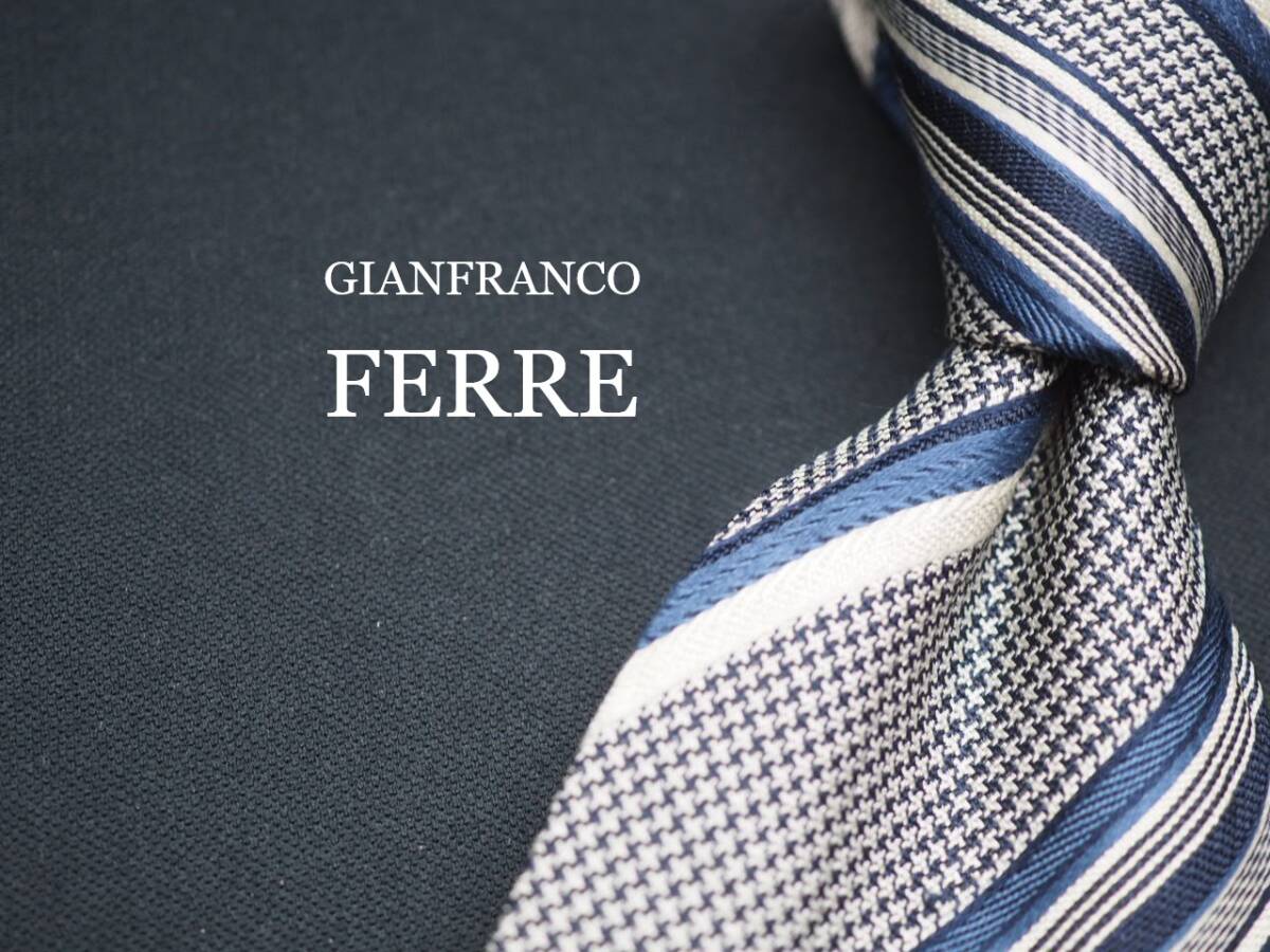 > 美品【GIANFRANCO FERRE ジャンフランコフェレ】 G1568 シルバーネイビー系 SILK ブランド ネクタイ 古着 良品 転売 仕入