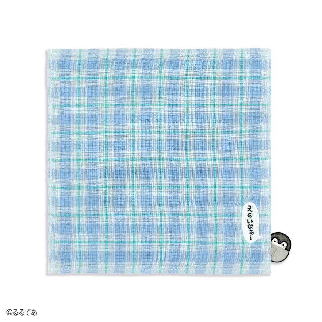 - コウペンちゃん ミニタオル フルフィーコットンガーゼパイルタオルハンカチ えらいなあ ブルー LINE FRIENDS タオル美術