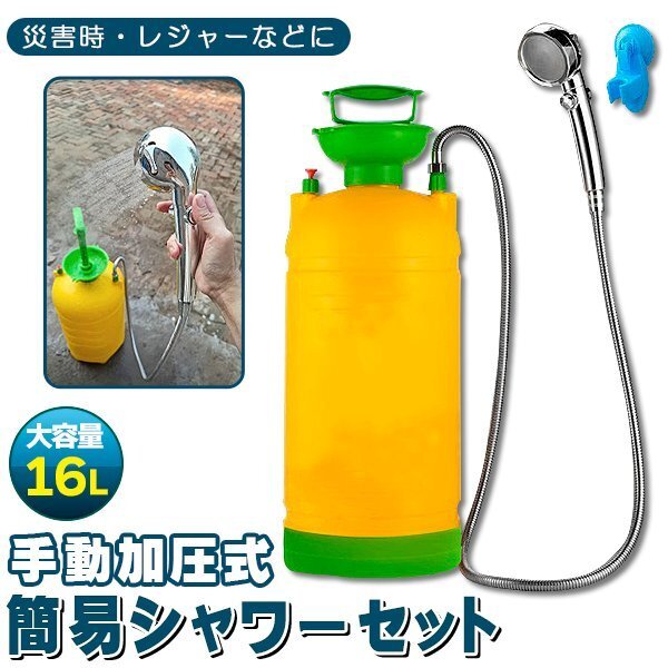 - 簡易シャワー ポータブルシャワー 16L 大容量 持ち運び用 アウトドア キャンプ 洗車 海水浴 海 サーフィン ペット 防災 断水