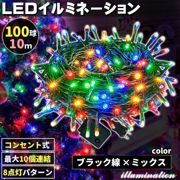 > AC式 イルミネーション コンセント 連結可 LED イルミネーションライト ツリー ライト 100球 100灯 10m 黒線 ミックス
