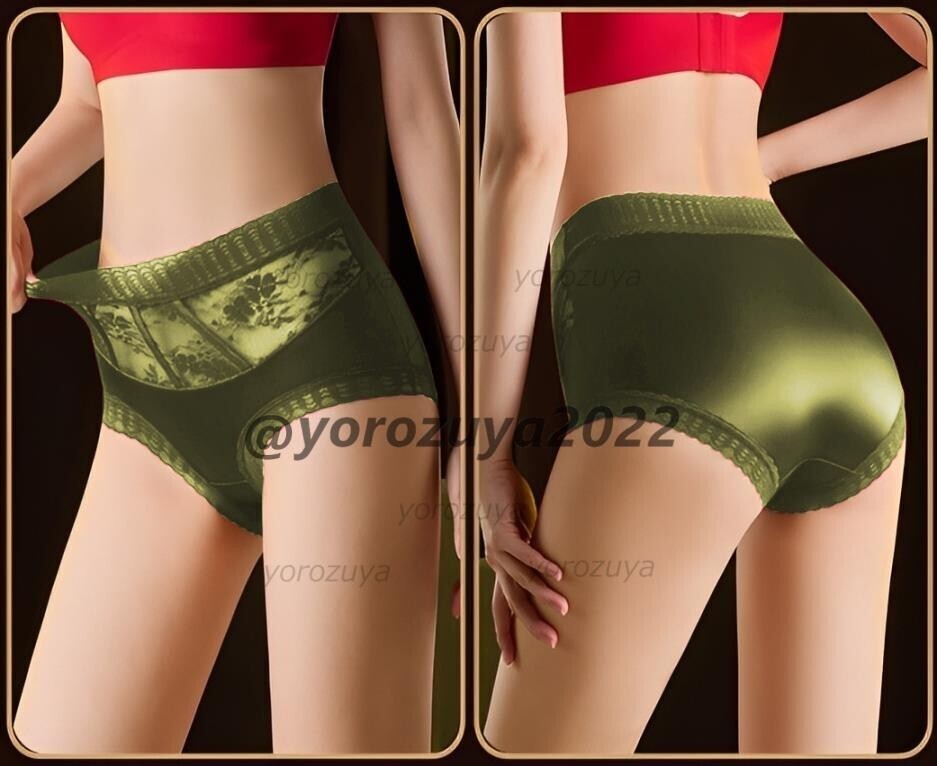 - 184-34-5 光沢 ウエスト レース セクシー フルバックパンティ【グリーンXL】レディース 女性 下着 パンツ ショーツ インナー ブリーフ .1