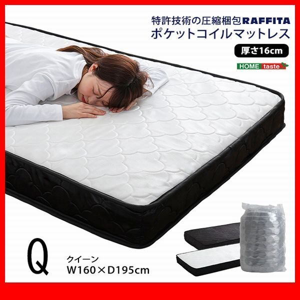 > マットレス★新品/ポケットコイルマットレス クイーン/快眠 圧縮ロール梱包/ブラック ホワイト/zz