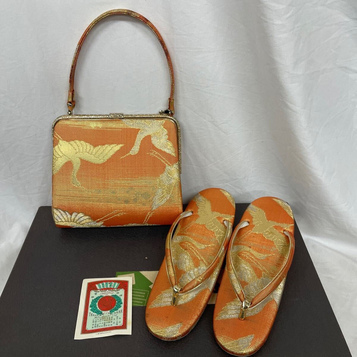- 草履バッグセット 鶴 和装小物 バッグ 佐賀錦 三越 成人式 【中古】