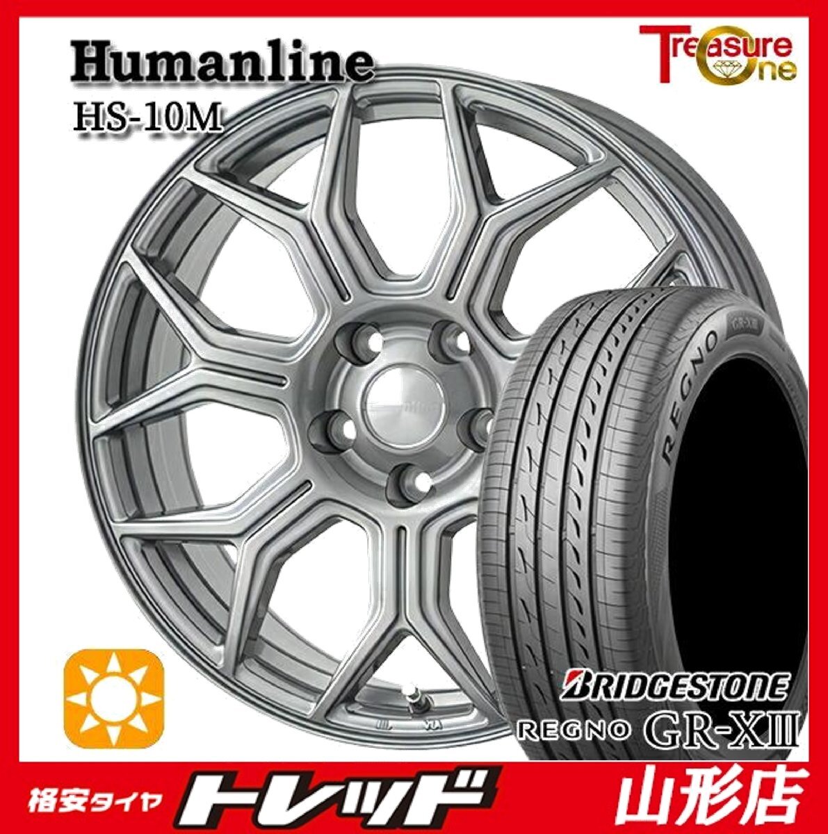 > 山形店 新品 夏タイヤホイール4本セット Humanline HS-10M 17インチ 7.0j 5H114.3 +38 DG ブリヂストン レグノ GRX3 215/55R17 2025年製
