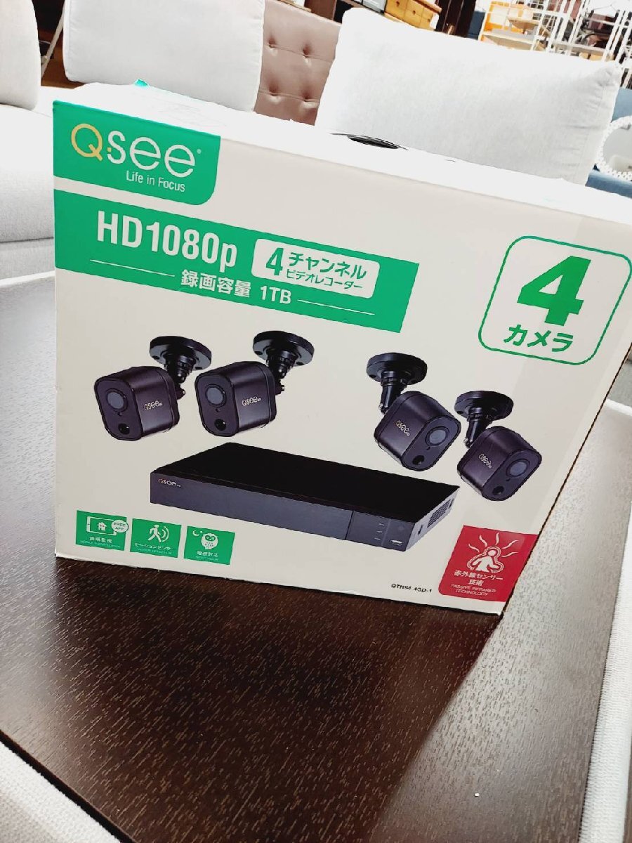 - HDD1TB 熱感知センサー(体温と人の動きに反応)カメラ×4台(HD1080p full HD最大200万画素)