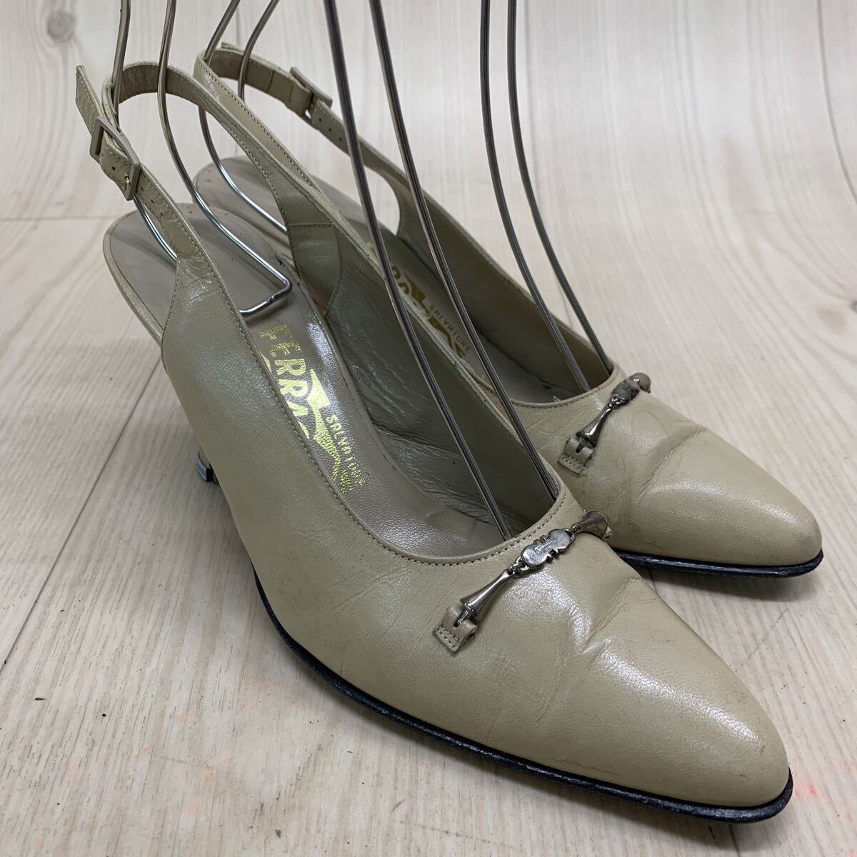 - N14 FN-251031-273 Salvatore Ferragamo サルヴァトーレフェラガモ スリングバックパンプス ヒール 革靴 ベージュ レディース サイズ表記 7