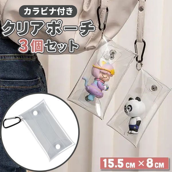 - ★ 透明 クリアポーチ 3個セット カラビナ付き ぬいポーチ アクスタ ケース かわいい おしゃれ ポーチ 推し活 推し活グッズ カラビナ