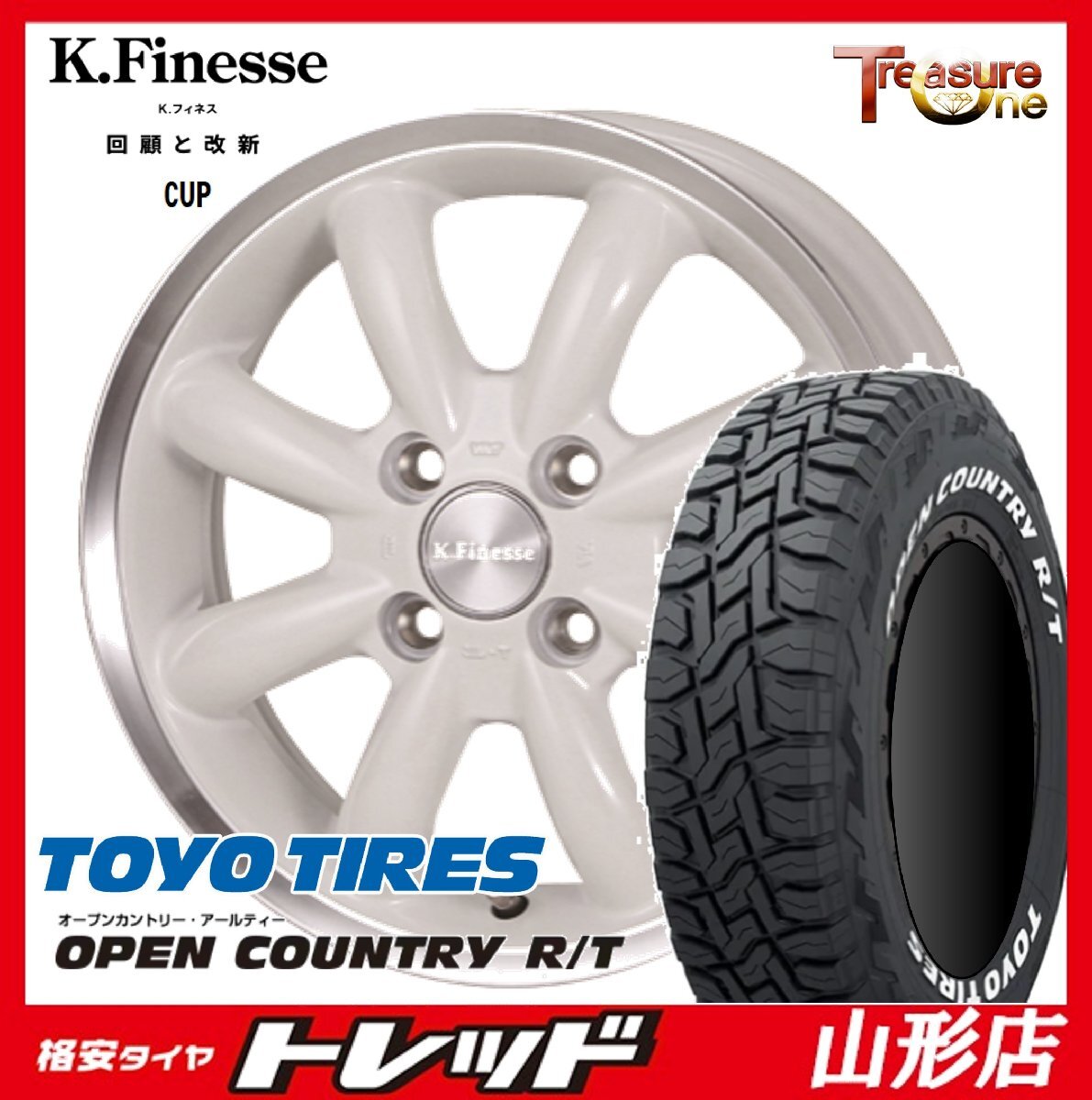 - 山形店 新品 タイヤアルミセット ケイフィネス CUP 15インチ 4.5j 4H100 +45 WHP TOYO オープンカントリーR/T 165/60R15 2024年製 ハスラー