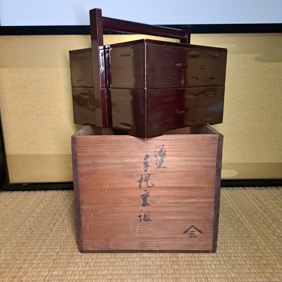 - 漆器 木製 手提重組 骨董 漆芸 A3 M1