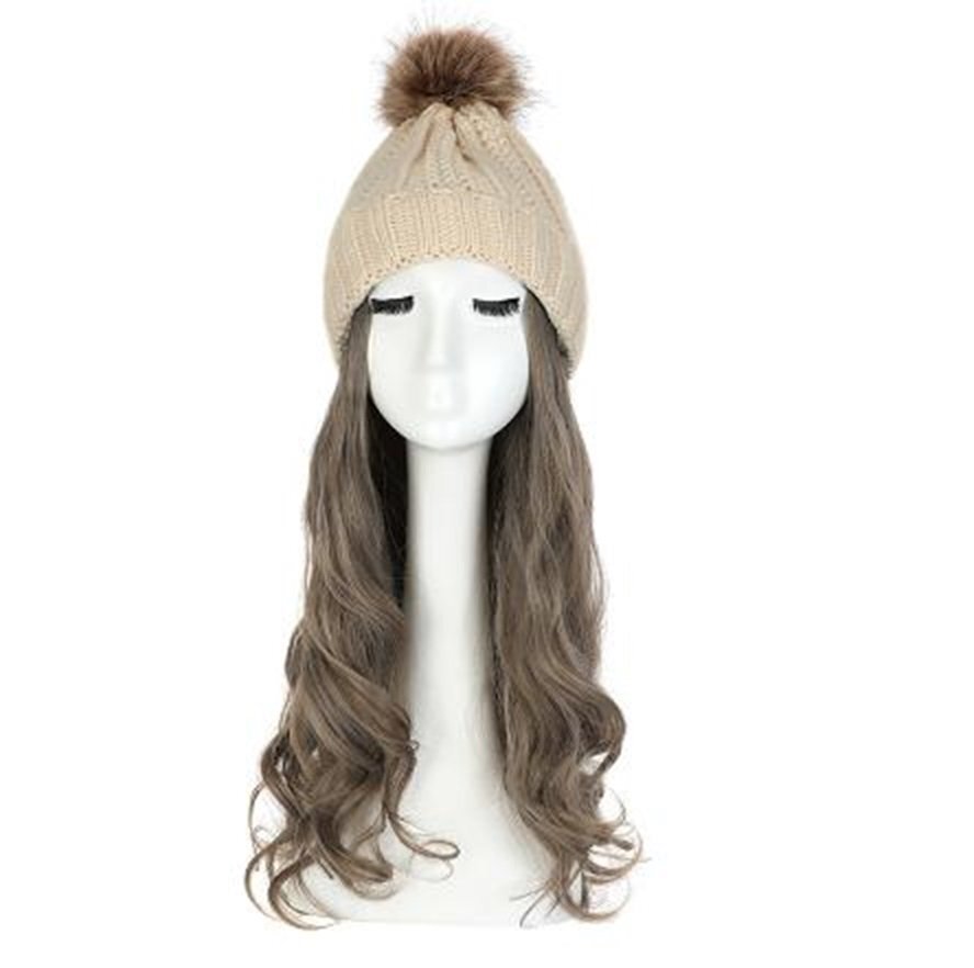 - ウィッグ付きニット帽 ニット帽/ベージュ ウィッグカラー/E ロングヘアー イメチェン 髪色チェンジ コスプレ