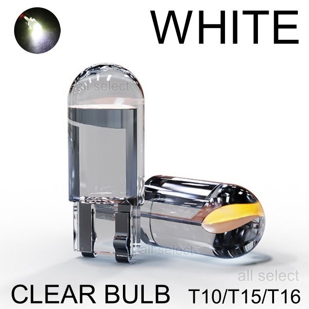- ホワイト LED T10 T15 T16 ウェッジ LEDバルブ COB素子 12V用 2個セット