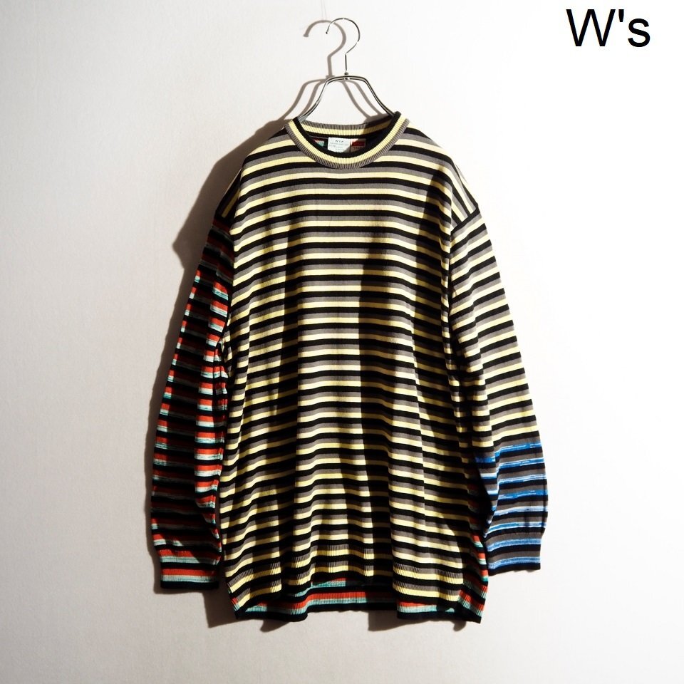 > R3301P ▼WASTE YARN PROJECT ウェイストヤーンプロジェクト▼ 脇スリット 2way コットンウール 切り替え ボーダーニット S 春秋 rb