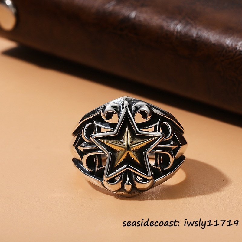 > 1円~◆シルバー925 リング ドクロ 星 幸福 祈り 幸せ 欧米 ファッション 指輪 アクセサリー 男女兼用レディース サイズ調整可