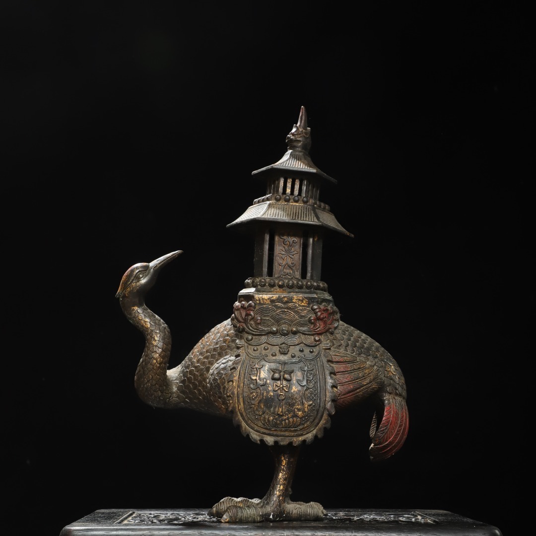 - 旧蔵 古銅彫 拓金 鳳凰仙鶴炉 古擺件 古置物 中国古玩 骨董品 時代物 稀少唐物