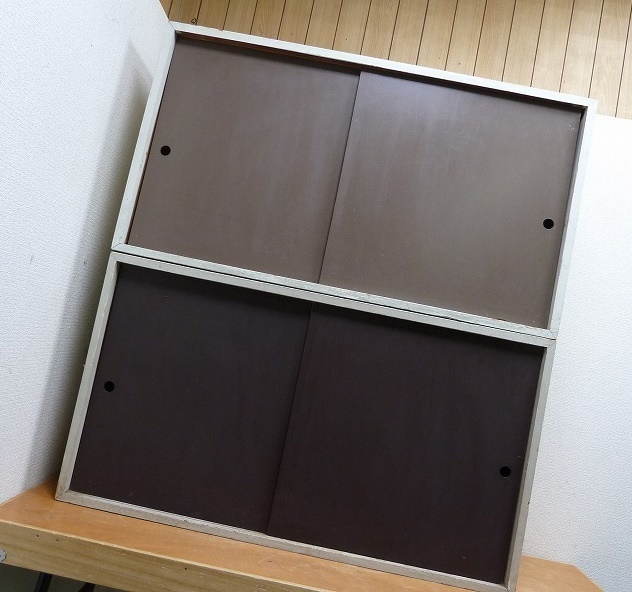 - (☆BM)木製 二段 チェスト チャコール&ブラウン①引き戸 箪笥 キャビネット 古い 懐かしい 昭和レトロ 日本 家具