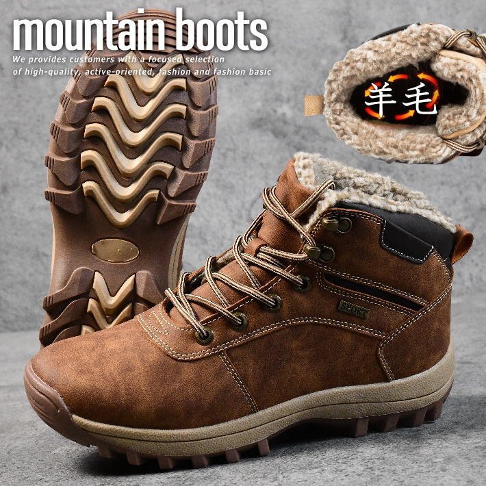> 防寒ブーツ ワークブーツ メンズ レザー PU 冬靴 防滑 防水 マウンテンブーツ ボア ショートブーツ 靴 7987254 25.5cm VINTAGE BROWN 新品