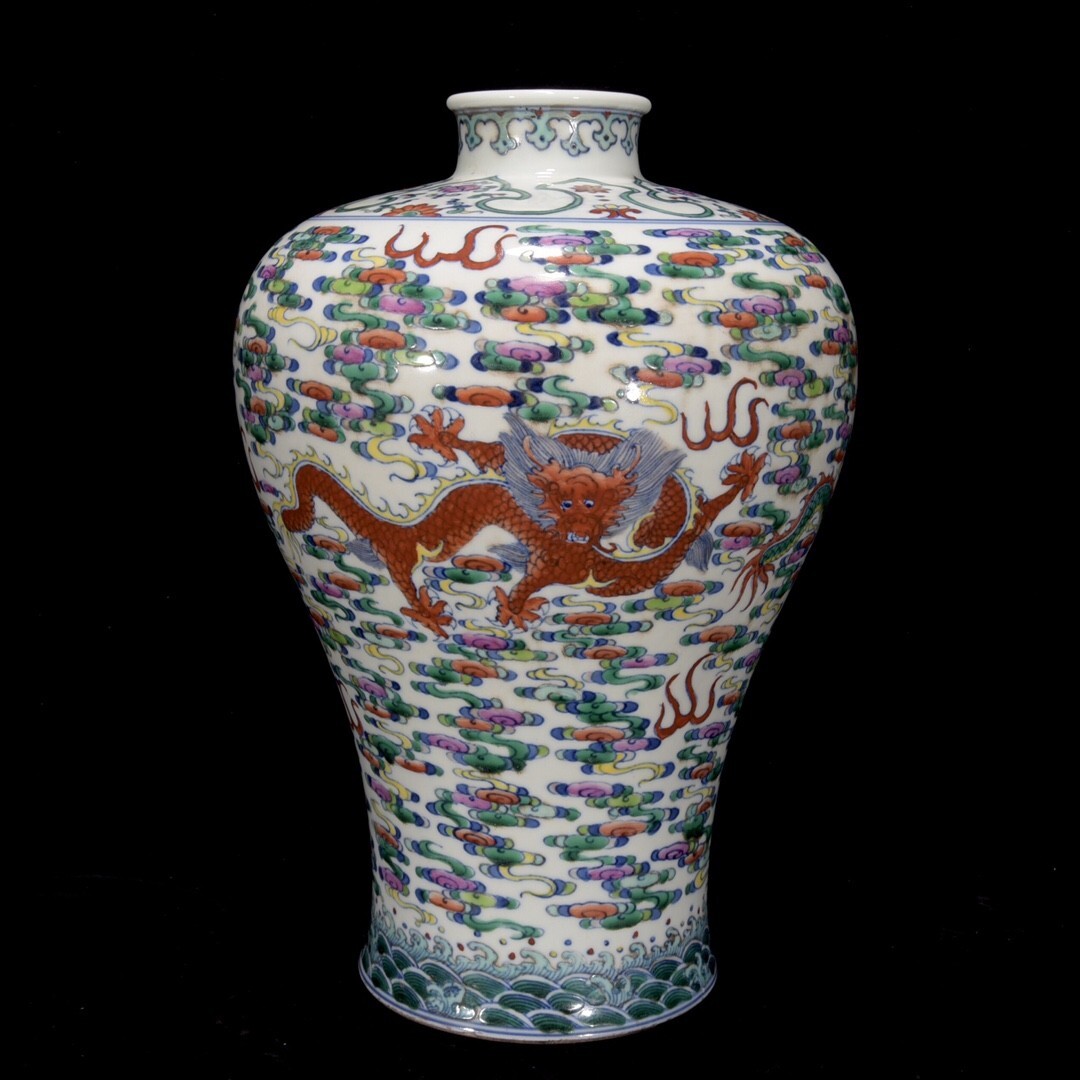 > 永し 清時代 大清康熙年製 青花斗彩 龍鳳呈祥紋瓶 古陶磁器 陶芸 皿 中国陶瓷器 唐瓷 置物擺件 古美術品 古賞物 収集 旧家蔵出 中国唐物