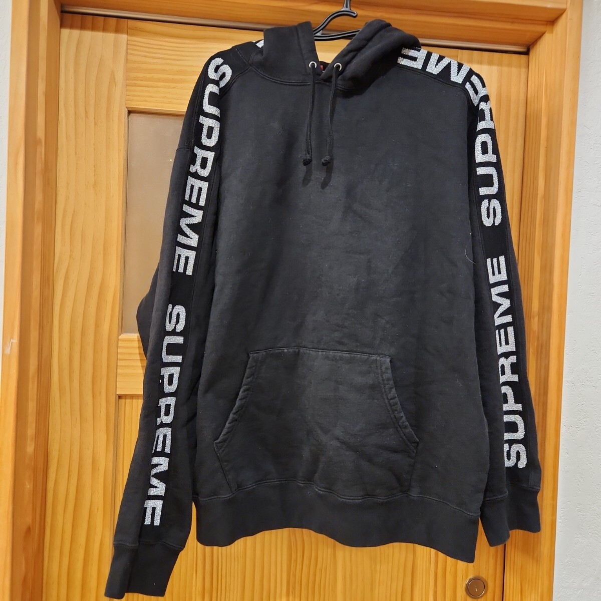> 希少 Lサイズ Supreme シュプリーム Metallic Rib Hooded Sweatshirt プルオーバーパーカー ブラック メンズ L