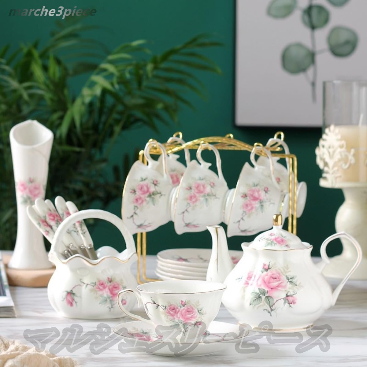 > 【お茶セット ティーカップ】セラミック製 ティーポット 21点セット|ヨーロピアン ヴィンテージ おしゃれ ギフト プレゼント 箱付き
