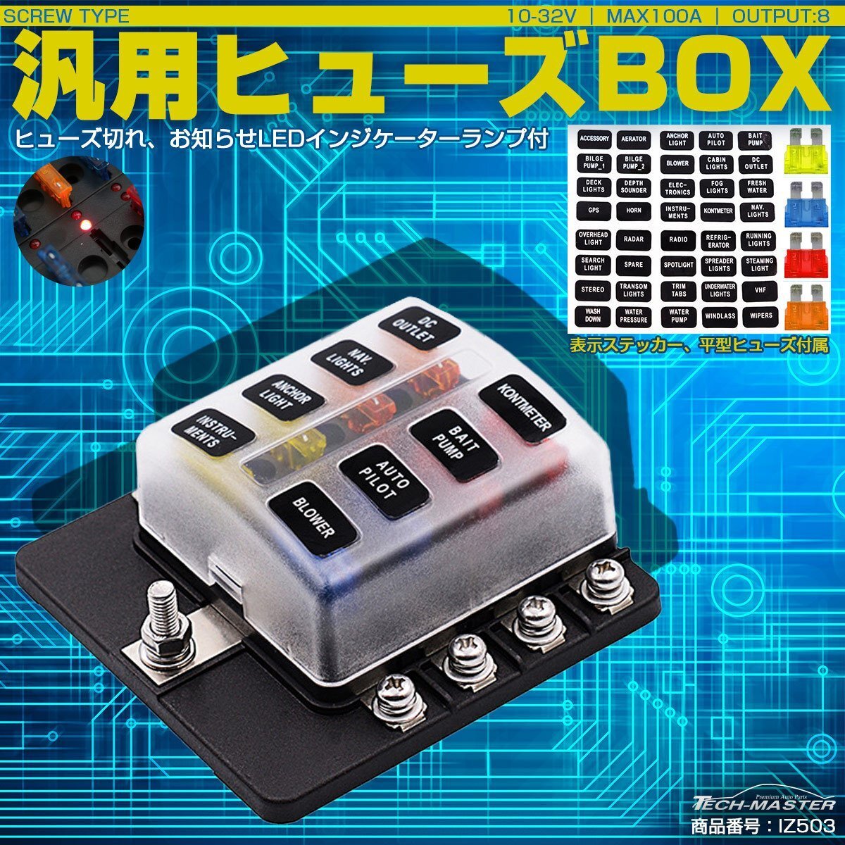 - 平型ヒューズ用 ヒューズボックス 8極タイプ DC12V/24V兼用 MAX100A IZ503