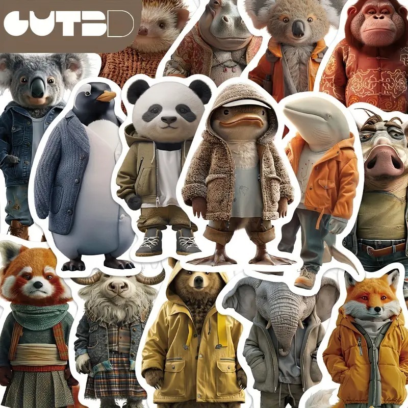 - 50枚セット ステッカー 動物 二足歩行 アニマル 車用 6cm おしゃれ ノートパソコン ビニール シール 2D バイク 窓用 インテリア t9372