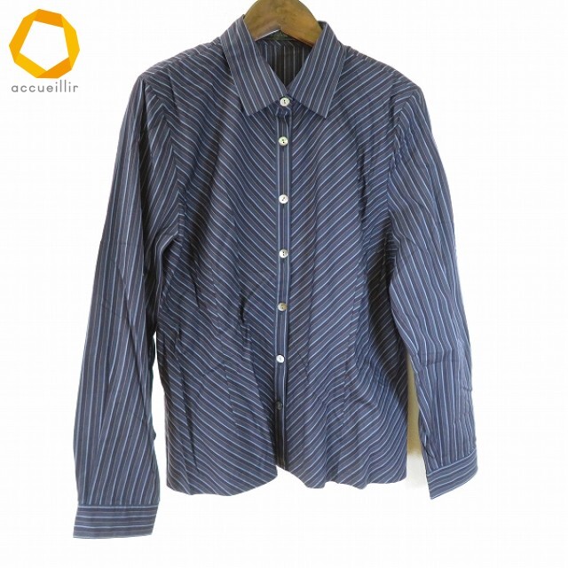 > #a レリアン Leilian シャツ ブラウス 13 紫系 藤色 ストライプ コットン 長袖 日本製 レディース [972653] k01