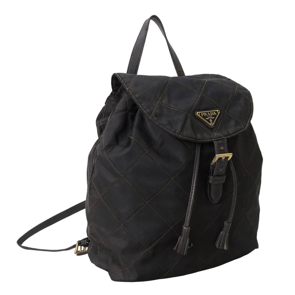 > 本物■プラダ■キルティング リュック 三角 ロゴ ブラック ナイロン レザー ゴールド バックパック デイバッグ