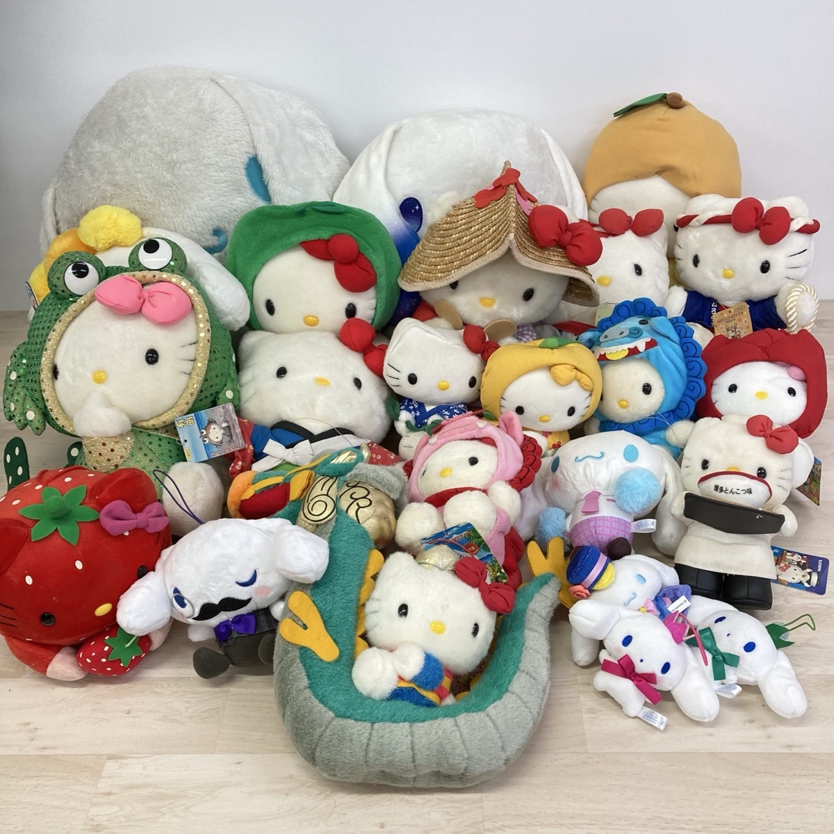 > 現状品 サンリオ シナモロール ハローキティまとめ ぬいぐるみ マスコット 雑貨 ご当地 総重量約7kg[X0538]