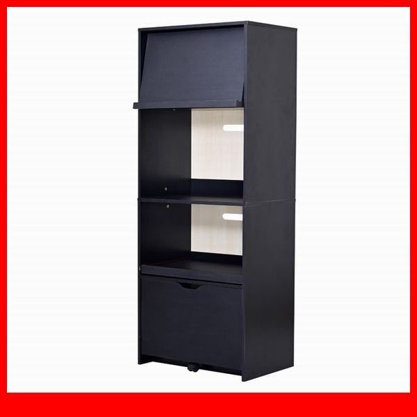 - レンジ台★新品/コンパクト 幅60cm レンジ台/オープンラック フラップ扉 スライド 引き出し収納 コンセント付 背面化粧/黒 ナチュラル/a1