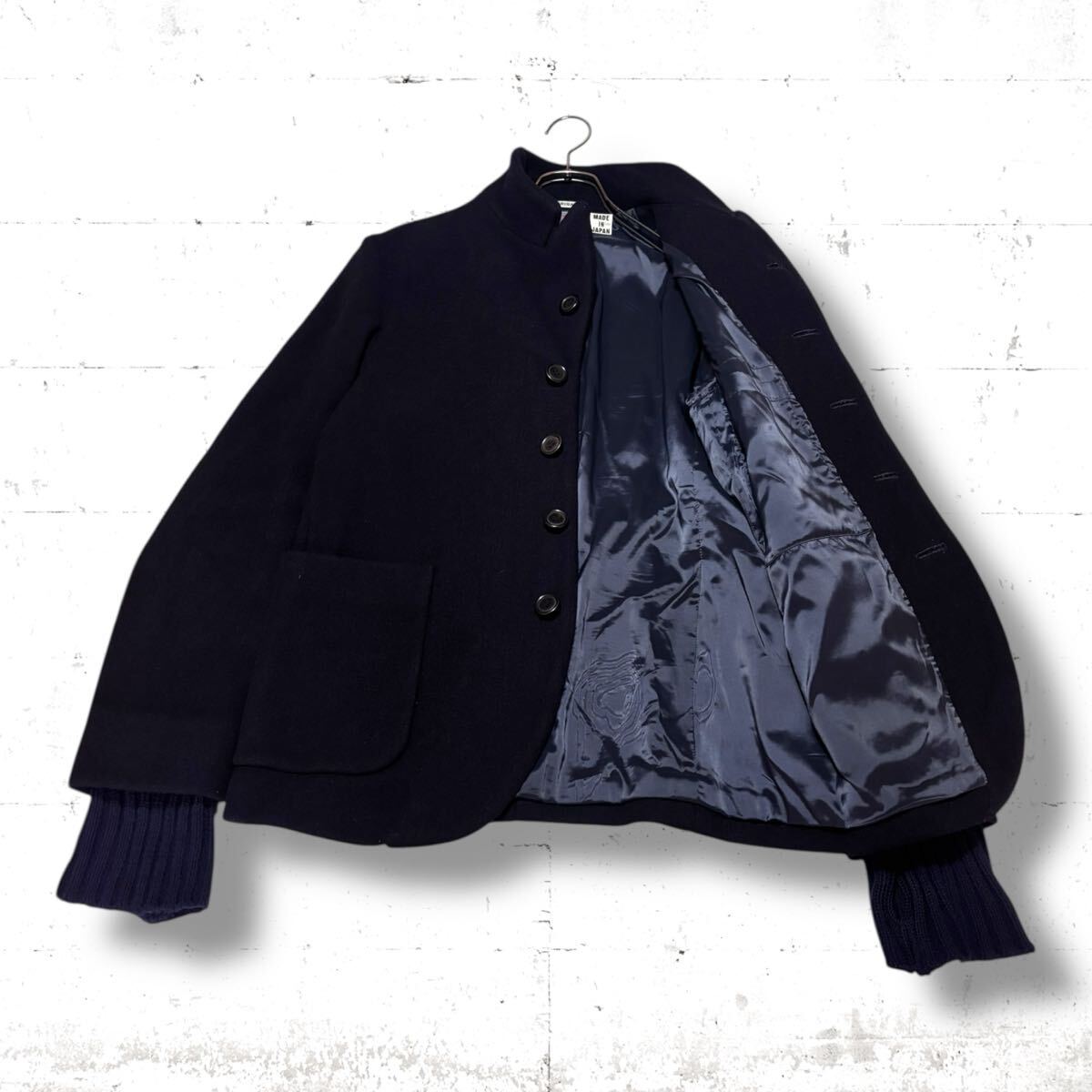 > BLUE BLUE メルトン ウール ジャケット 肉厚 聖林交司 M コート ブルーブルー 黒色 ブラック ハンドウォーマー ニット