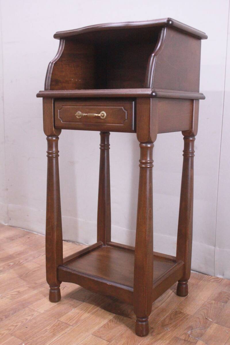 - レトロ! 電話台 棚 サイドチェスト 木製 アンティーク家具 1988年製 ビンテージ 四国工芸 中古現状品■(Z3739)