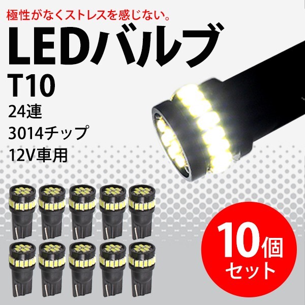> 10個 T10 LED 拡散24連 白 ポジション ナンバー灯 6500K ルームランプ 3014チップ 12V用