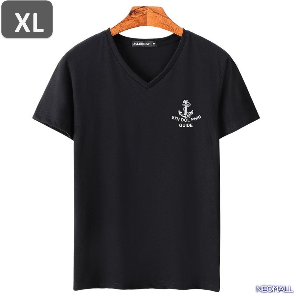 - 夏にピッタリ ☆ Vネック 半袖 Tシャツ【454】 ブラック XLサイズ トップス シャツ シンプル イラスト デザイン 春夏