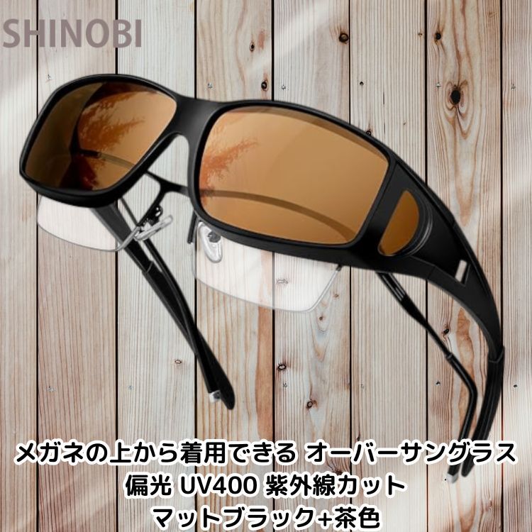 - メガネの上から着用できる オーバーサングラス 偏光 UV400 紫外線カット マットブラック+茶色