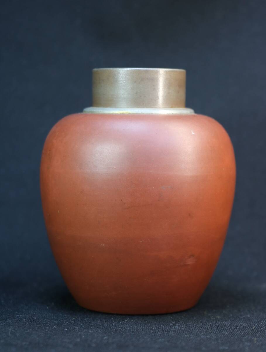 - 久本葛尾作【錫口茶入】虫明焼「備前陶森/葛尾」陶印あり