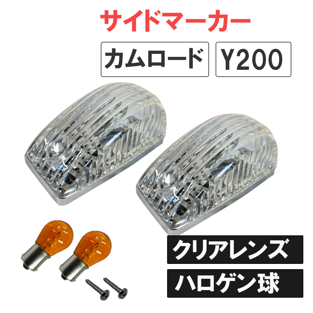 - 【互換品】カムロード Y200系/12V ハロゲン球付き サイドマーカー2個/クリアクレンズ/S25シングル球 オレンジ 180度
