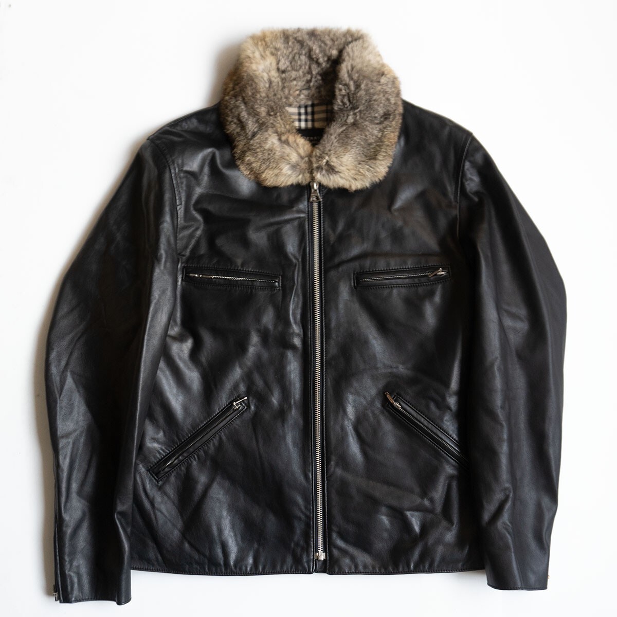 - 【最高級】BURBERRY BLACK LABEL【ラムレザー×ラビットファー レザージャケット】L ブラック 羊革 バーバリーブラックレーベル s2511074