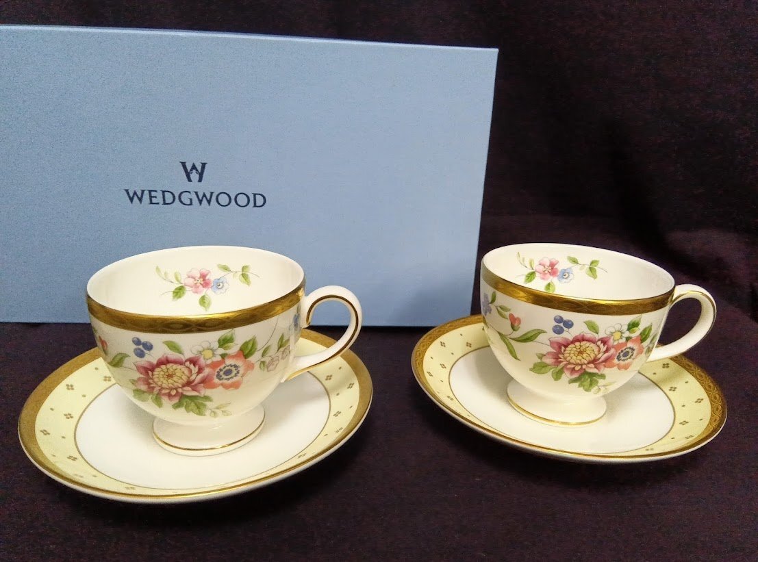 > 未使用!ウェッジウッド☆Grace グレイス ペア カップ&ソーサー 2客 WEDGWOOD ボーンチャイナ 珈琲紅茶兼用 花柄 金彩 碗皿 美品 箱有
