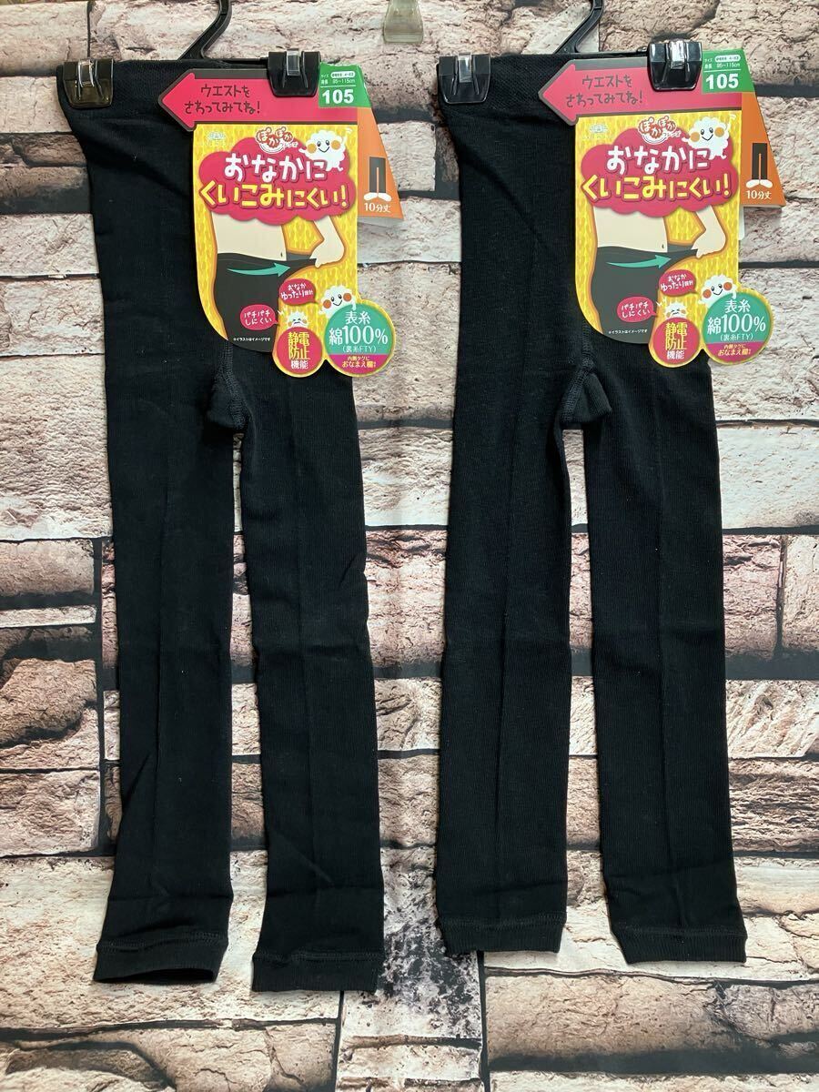 - 『105サイズ2足組』【靴下の岡本】ぽかぽか暖かい!表糸綿100% おなか食い込み防止&静電気防止付き子供レギンス