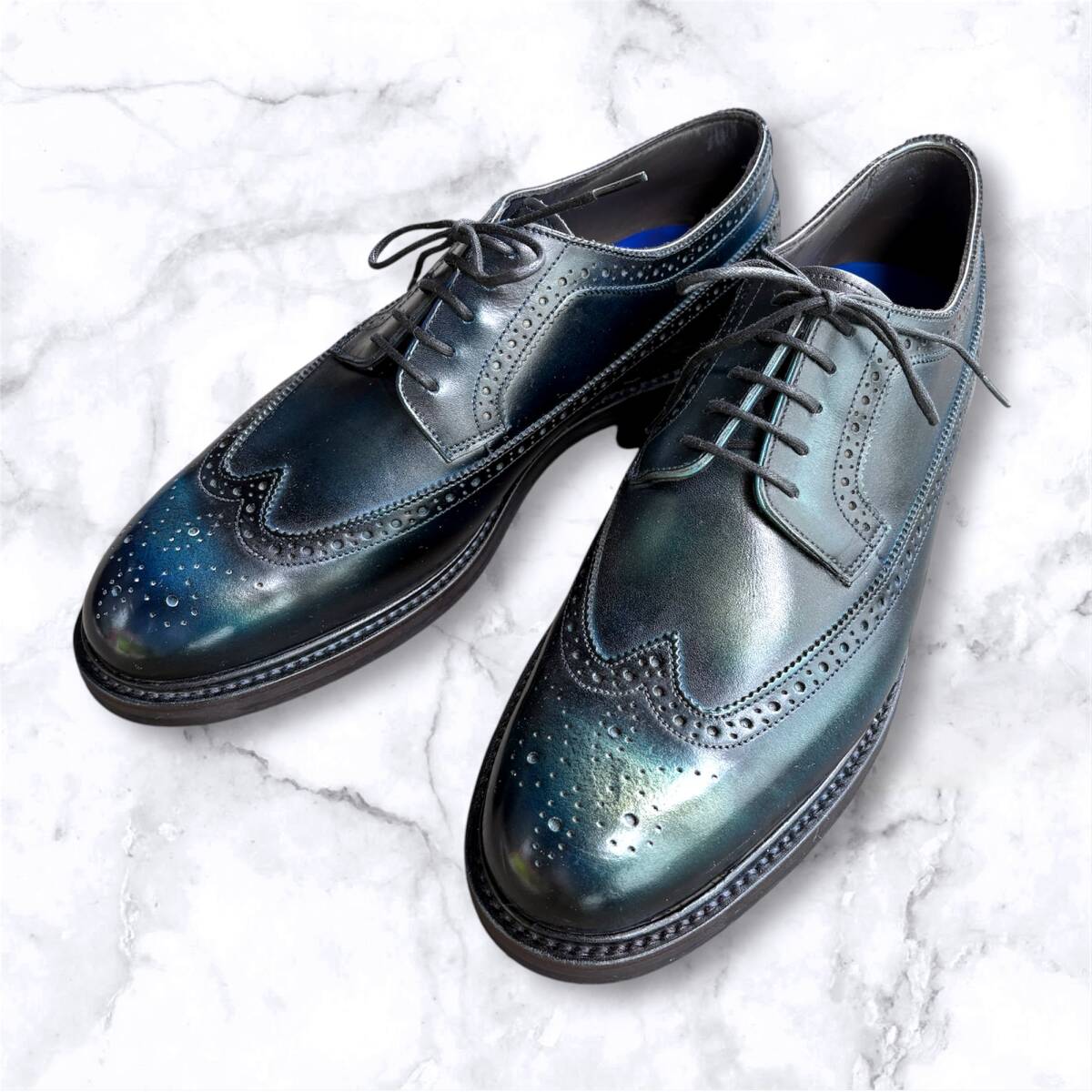 - 【エヌ エクレ】メンズ パティーヌ 本革レザー シューズ オーロラブルーグリーン青系 41 42 8 限定 スニーカー FRANCESCO BENIGNO