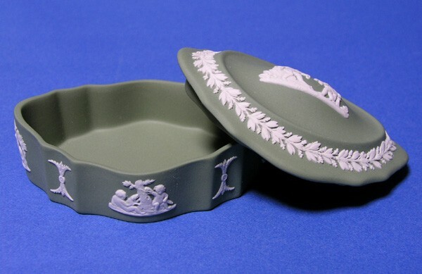 - ◎未使用 ウェッジウッド グリーンジャスパー 可愛い変形蓋物「天使」◎sh