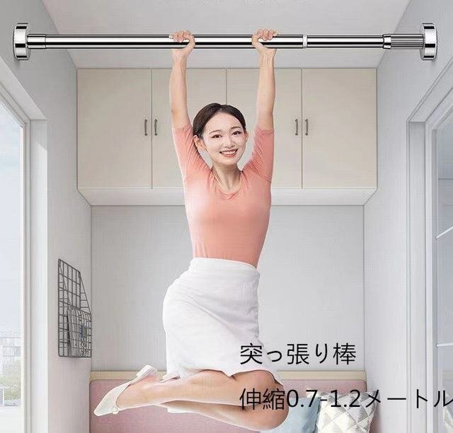 - 突っ張りラック 伸縮棒 突っ張り棒 ステンレス つっぱり棒 強力 収納 押入れ 突っ張り棚 物干し竿 洗濯物 0.7-1.2メートル