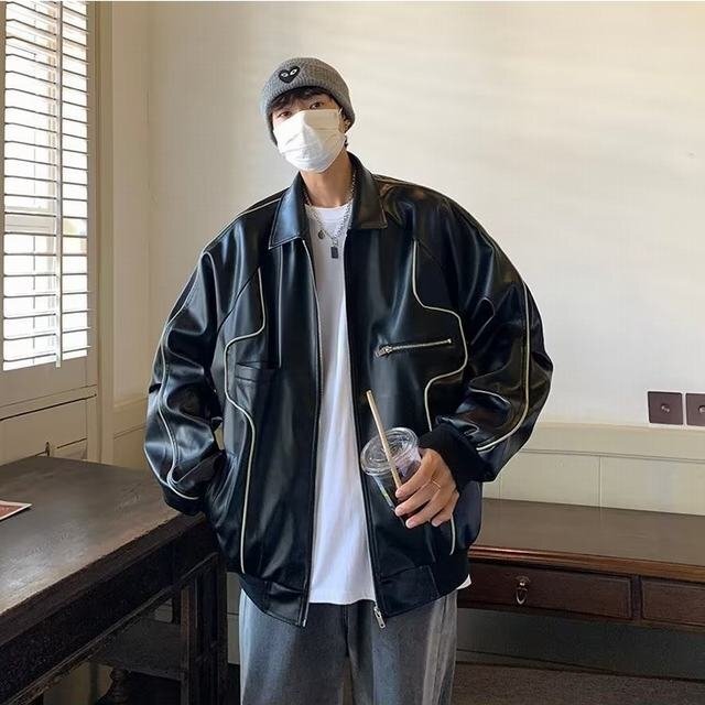 > レザージャケット 革ジャン メンズ ブルゾン アウターバイク ライダースジャケット ジャケット フェイクレザー 春秋冬 ブラック XL