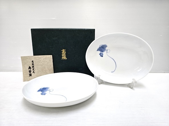 - 【未使用展示品】 天草 高浜焼 寿芳窯 楕円皿 2枚 セット 箱あり ○YR-18130○