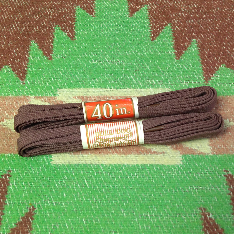 - 2ペア【BULL DOG】デッド 40s シューレース 茶 40 ワーク シューズ ブーツ に★ビンテージ ミリタリー 靴紐 平紐 USA 古着 30s50s