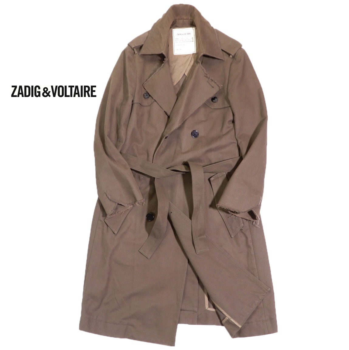 - ザディグエヴォルテール ZADIG&VOLTAIRE スタイリッシュ☆バックロゴ “AMOUR” 刺繍入り フリンジカラー トレンチコート S